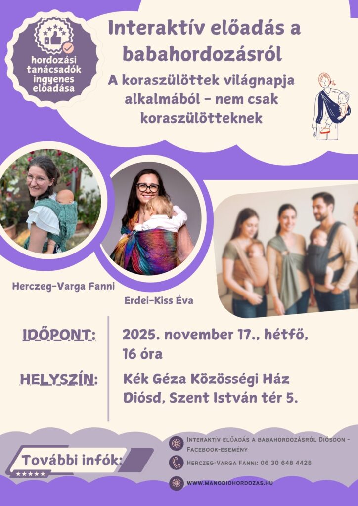Interaktív előadás a babahordozásról a koraszülöttek világnapja alkalmából – nem csak koraszülötteknek. ![]()